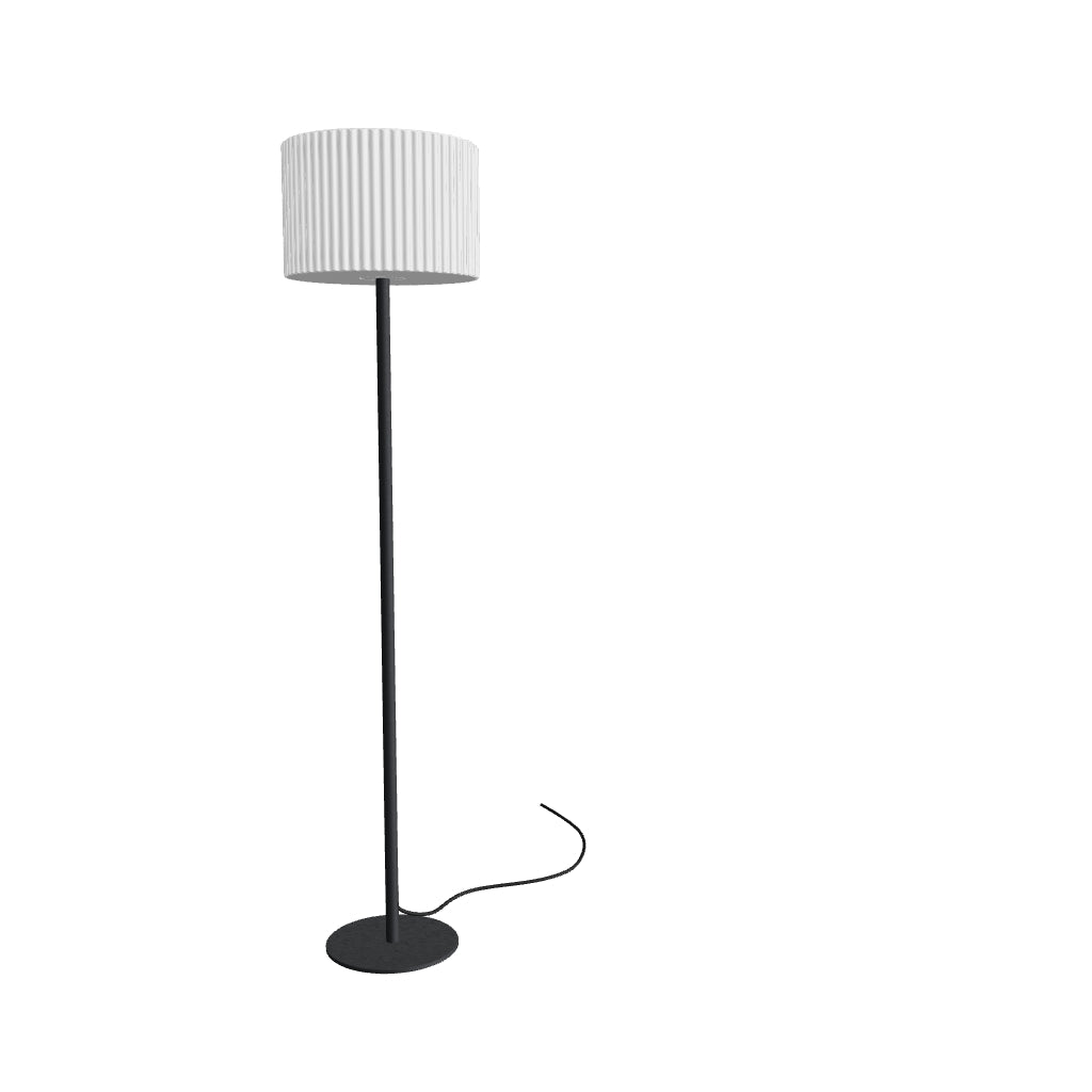 Állólámpa műanyag lámpabúrával. A tápkábel biztonsági konektorral végződik.
