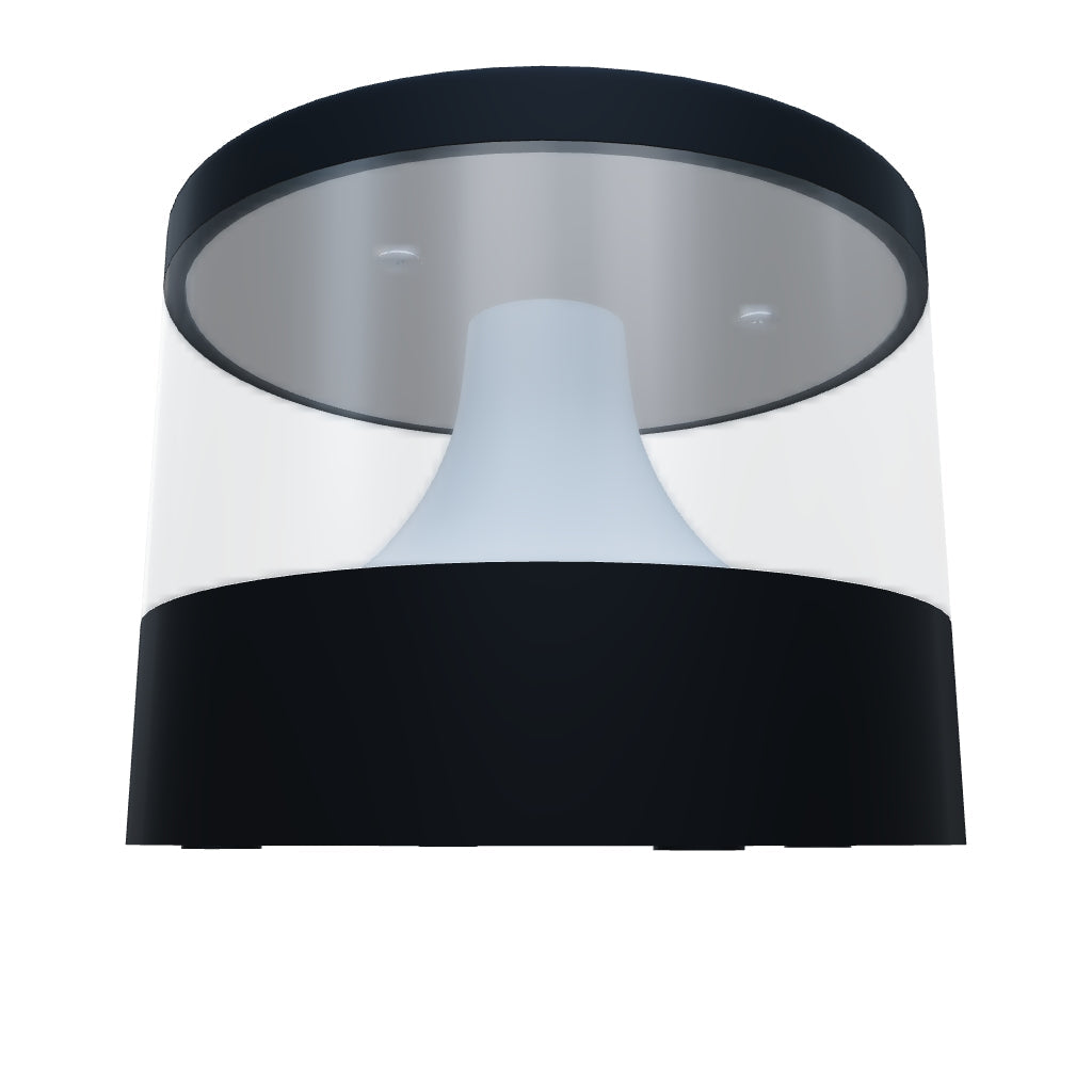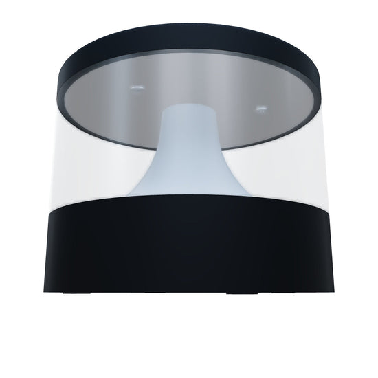 Felületre szerelhető kültéri LED lámpa, amely lágy fényét egyenletesen sugározza oldalirányba.