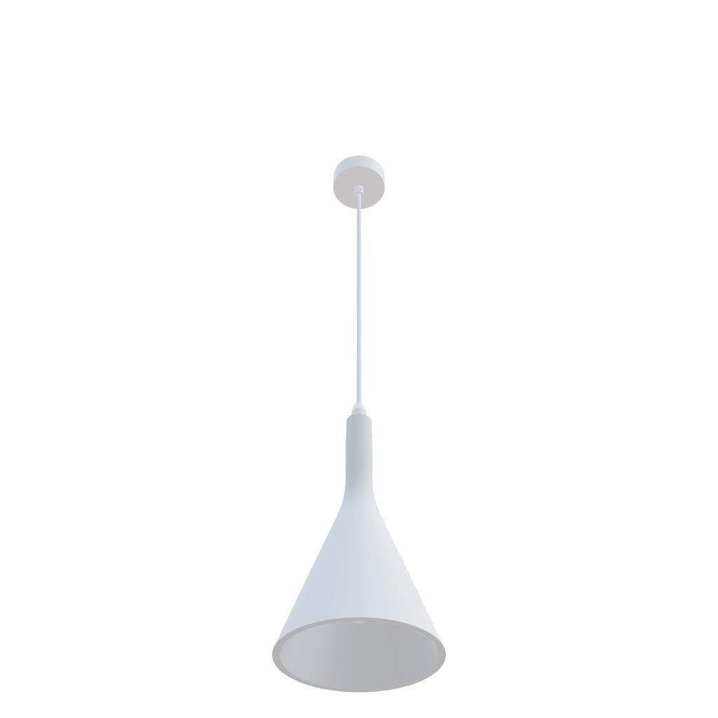 Függő gipsz lámpa E27 foglalatú fényforráshoz. Fehérre lakkozott fém mennyezeti talppal. A lámpa beltéri falfestékkel átfesthető.