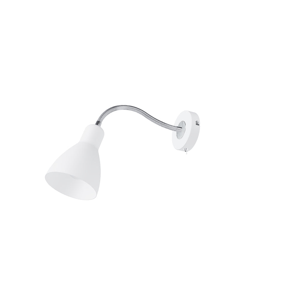 Fali, fém reflektor hajlítható nyakon, kapcsolóval a talapzaton, E27-es foglalatú izzóhoz.