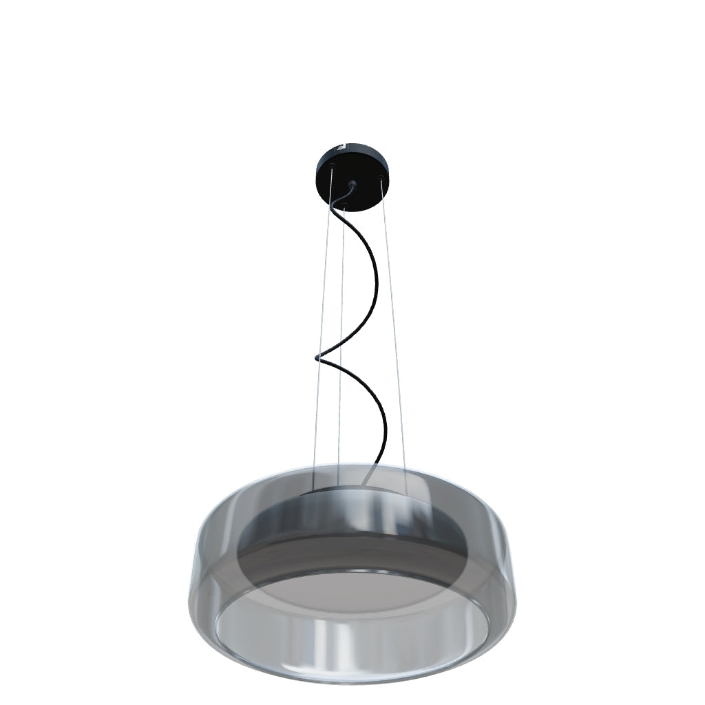 Függeszthető LED lámpa üvegbúrával, külső füstölt és belső tejüveggel. Az üvegben lévő apró buborékok a gyártási folyamatból adódnak, ez nem az üvegbúra hibája.