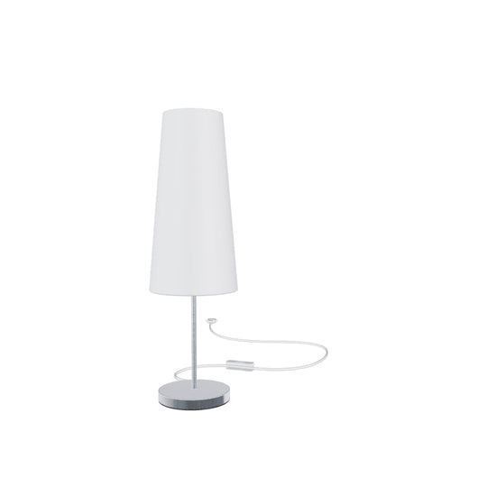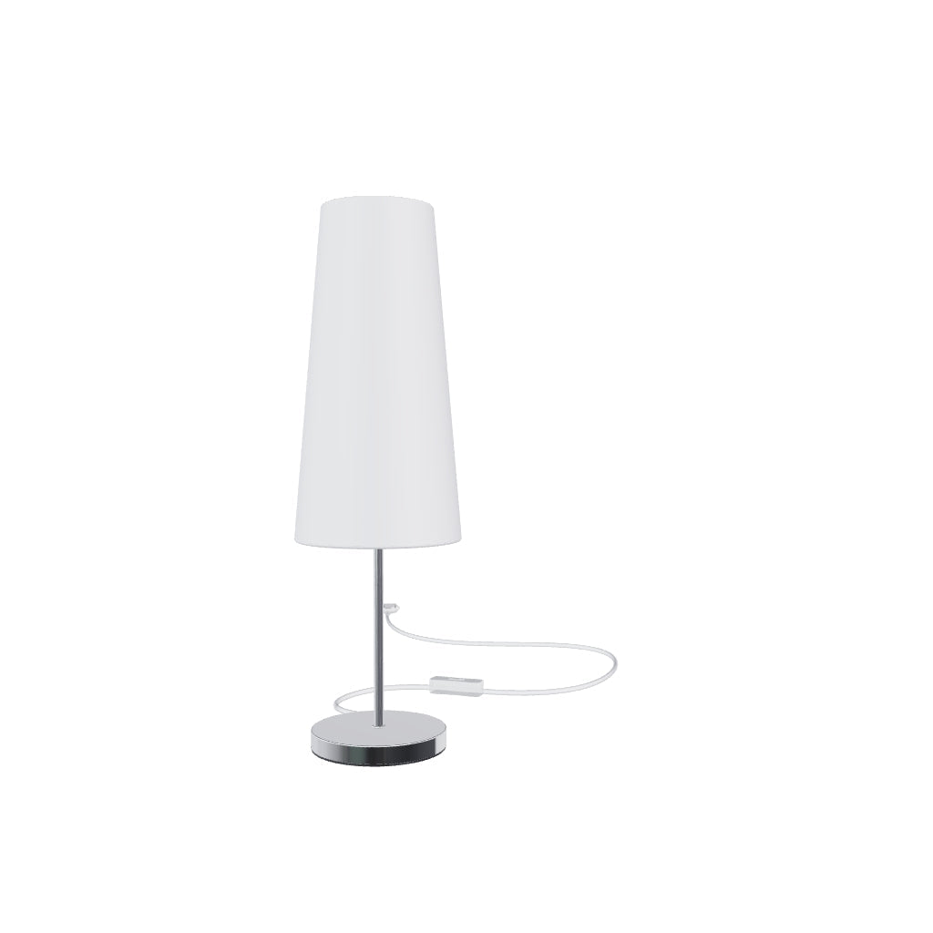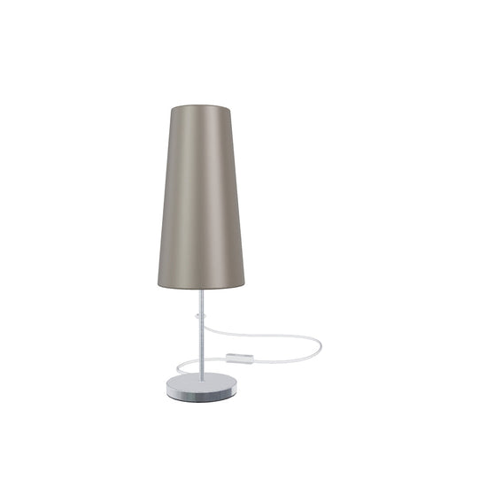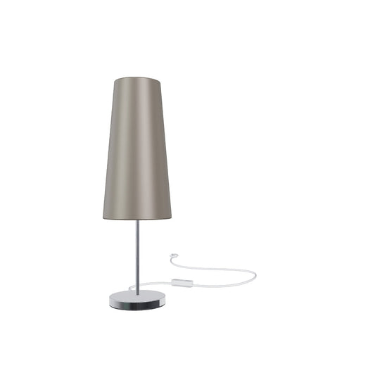 Asztali lámpa textil búrával és fém talppal. Alkalmas LED E27 fényforrásokhoz.
