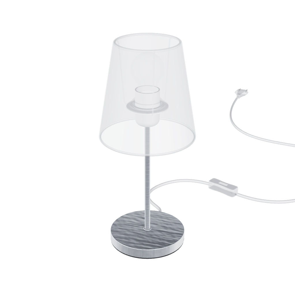 Asztali lámpa talapzat, fényes és matt fém kivitelben E27 foglalatú lámpabúrákhoz. Alkalmas lámpabúrák: CONNY 15/15, CONNY 15/30, RON 15/20, TEMPO 15/15, TEMPO 15/30.