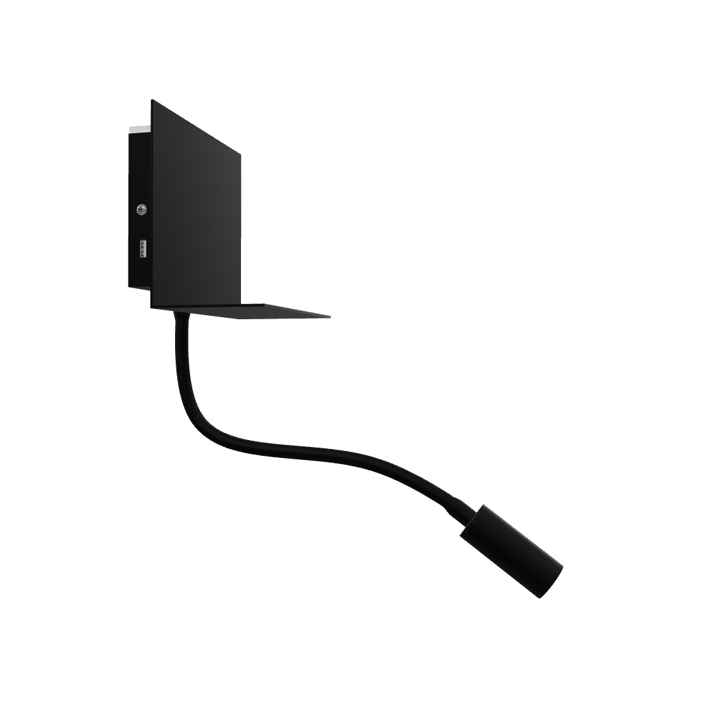 Fali, LED lámpa polccal a telefon tárolására, valamint beépített USB-porttal. A hajlítható nyakkal ellátott LED spotlámpa és a közvetett világítás külön kapcsolóval vezérelhető.