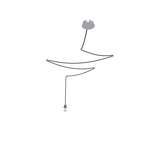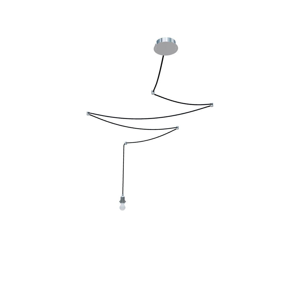 Variálható szett, amely alkalmas önálló használatra dizájn izzóval vagy könnyű lámpaernyők függesztésére. A szett a fekete textilkábelre szerelt rögzítőkkel rögzíthető a mennyezetre vagy a falra. A szett 4 db fekete műanyag rögzítőt vagy 4 db krómozott fém rögzítőt tartalmaz. A rögzítőket külön is megrendelheti. Kompatibilis lámpaernyők: ARISTA, ASPRO, DOUBLE, JAKARANDA, RON.